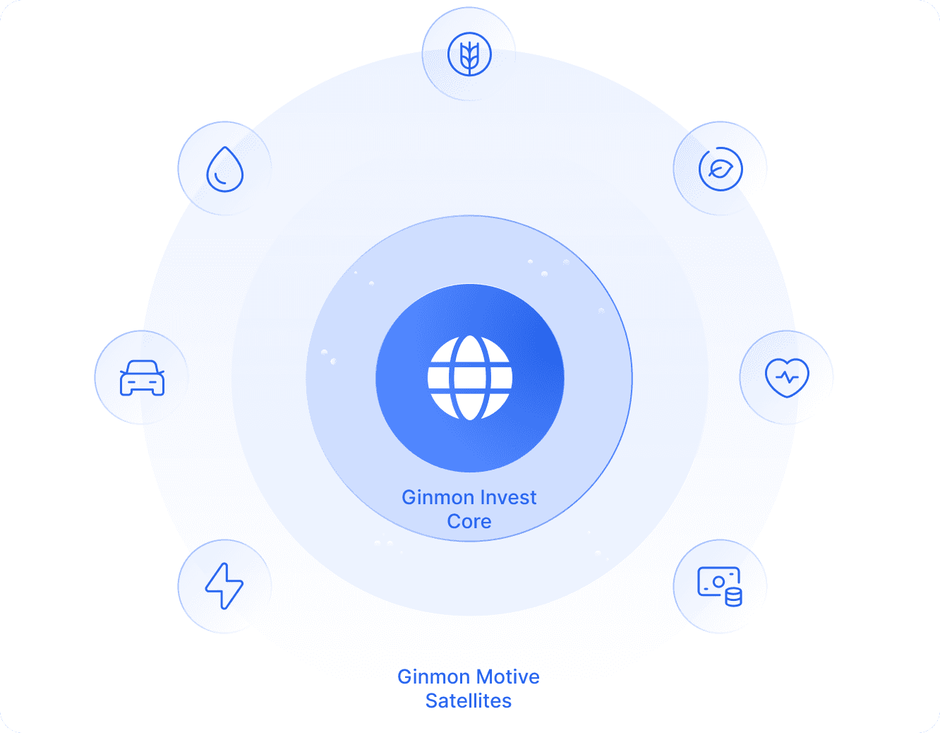 Ginmon Motive eignet sich ideal zur Umsetzung einer Core-Satellite-Strategie. Hierbei wird der größte Teil Ihres Vermögens in eine breit diversifizierte Strategie (z.b. mit Ginmon Invest) investiert und mit einzelnen Motiven individuelle Akzente und Übergewichtungen umgesetzt.
